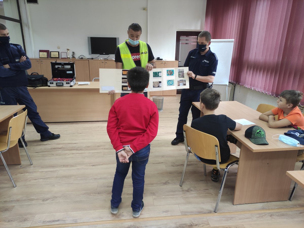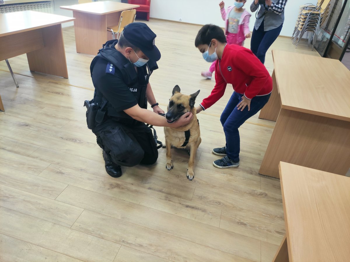 W czasie wizyty dzieci zapoznały się ze sprzętem i wyposażeniem, jakie technik kryminalistyki wykorzystuje w codziennej służbie. Policjant opowiadał o swojej pracy i przy okazji zaprezentował walizkę daktyloskopijną. Technik kryminalistyki pokazał dzieciom, jak należy zabezpieczać ślady z różnych przedmiotów. Podczas wizyty mundurowych, dzieci dowiedziały się, kim jest dzielnicowy i jakie są jego zdania. W związku z tym, że czas wakacji dobiega końca i dzieci niebawem powrócą do szkolnych ławek, mając na uwadze prowadzoną przez policję akcję „Bezpieczna droga do szkoły”, policjantka zajmująca się profilaktyką, przypomniała dzieciom o podstawowych zasadach bezpieczeństwa w ruchu drogowym. Główna atrakcją przygotowaną w tym dniu, był przewodnik psa policyjnego, który zawitał w bibliotece z czworonogiem.