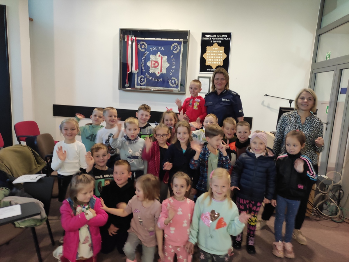 Dzisiaj tj. 7 października 2022 roku Komendę Powiatową Policji w Olkuszu odwiedziła grupa dzieci z przedszkola nr 8 w Olkuszu. Przedszkolaki zapoznały się z zawodem policjanta oraz dowiedziały się wiele cenny rad nt. bezpieczeństwa w ruchu drogowym. Ta niecodzienna wizyta sprawiła dzieciom radość i wywołała wiele uśmiechów na dziecięcych twarzach.