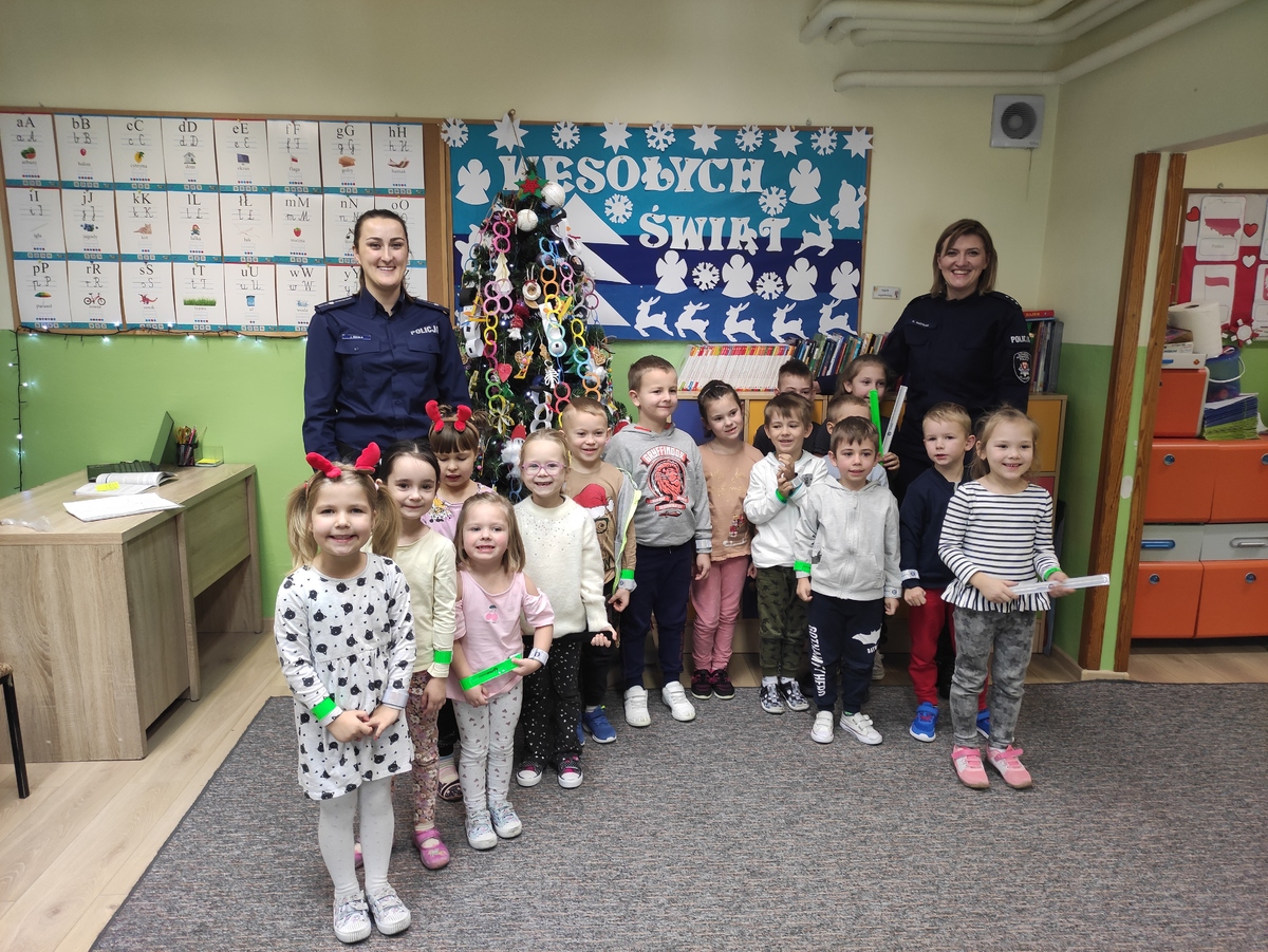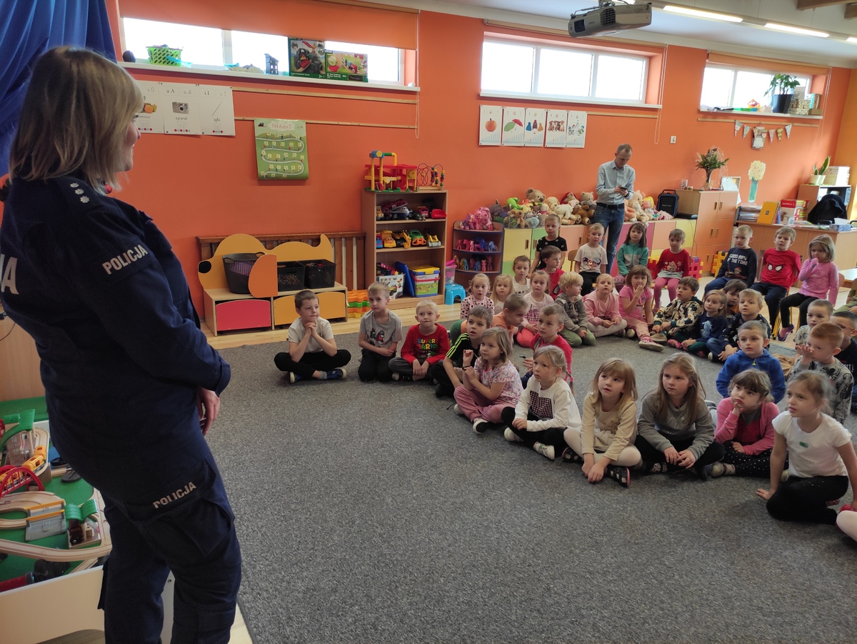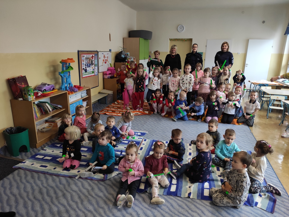 Wiek przedszkolny jest najbardziej właściwy do kształtowania prawidłowych postaw w kwestii bezpieczeństwa w ruchu drogowym. Edukacja od najmłodszych lat z pewnością zaowocuje na przyszłość i przyniesie pozytywne efekty w następnych latach rozwoju młodego człowieka. Podczas spotkań policjantki rozmawiały z dziećmi o bezpiecznym zachowaniu na drodze. Przedszkolaki uczestniczyły w scence przechodzenia przez jezdnię z uwzględnieniem zasad bezpiecznego poruszania się po drodze. Dużo uwagi policjantki poświęciły odblaskom, uświadamiając dzieciom, jak ważne jest ich noszenie, bo nie od dzisiaj wiadomo, że odblaski ratują życie - zwłaszcza o tej porze roku, kiedy panująca na zewnątrz aura, opady deszczu i śniegu znacznie pogarszają widoczność na drodze. Przedszkolaki dowiedziały się również, jakie niebezpieczeństwa mogą wynikać z kontaktów z nieznajomymi. Jak unikać niebezpiecznych zachowań w czasie zabawy na śniegu, w domu czy przedszkolu.
