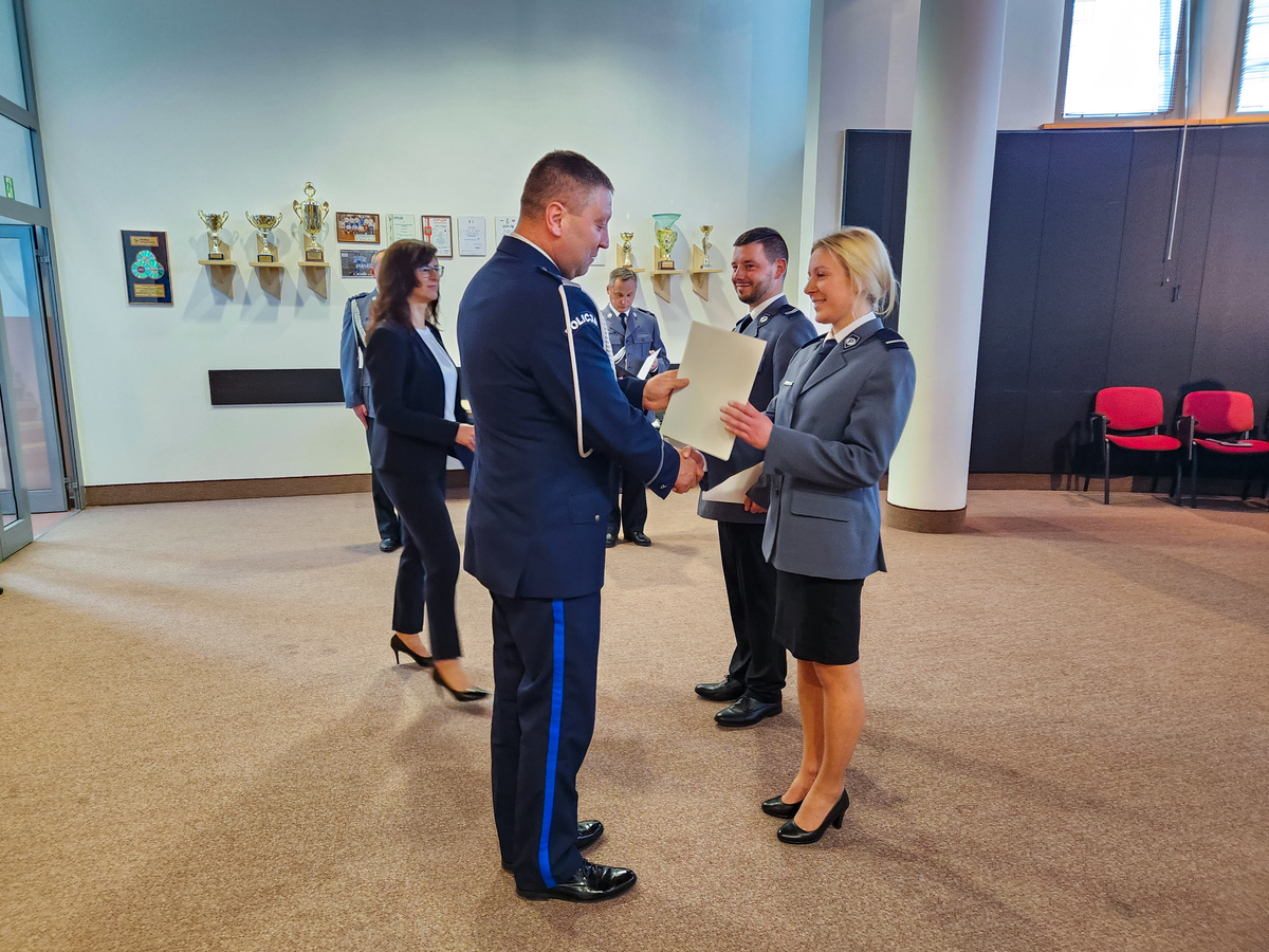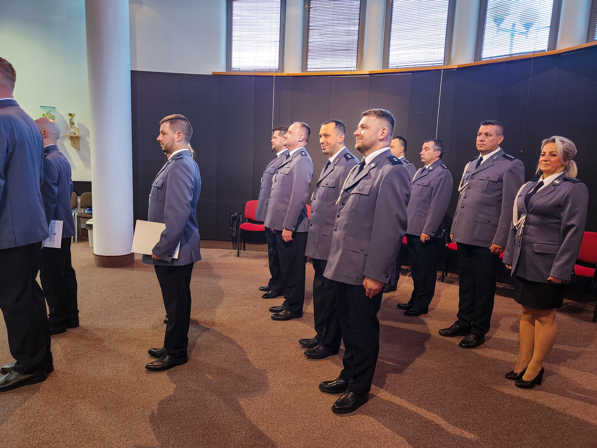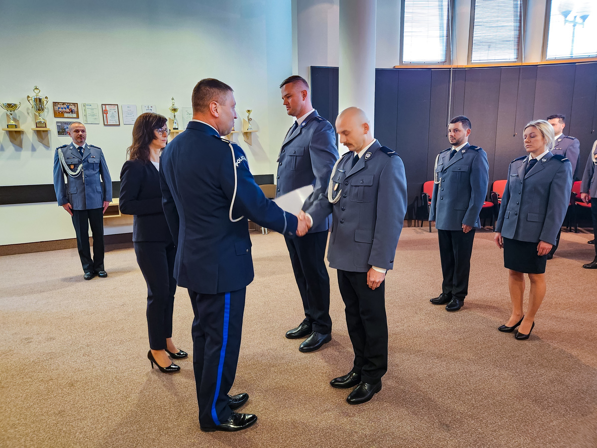 Wczoraj (12. 12. br.) w audi Komendy Powiatowej Policji w Olkuszu odbyła się uroczysta zbiórka, w czasie której rozkazem personalnym Komendanta Wojewódzkiego Policji w Krakowie na stopnie młodszego aspiranta oraz sierżanta mianowano 3 funkcjonariuszy. Podczas tej uroczystości I Zastępca Komendanta Powiatowego Policji w Olkuszu młodszy inspektor Adam Milanowski za profesjonalizm i zaangażowanie wyróżnił również dwóch policjantów Ogniwa Patrolowo-Interwencyjnego tutejszej jednostki.