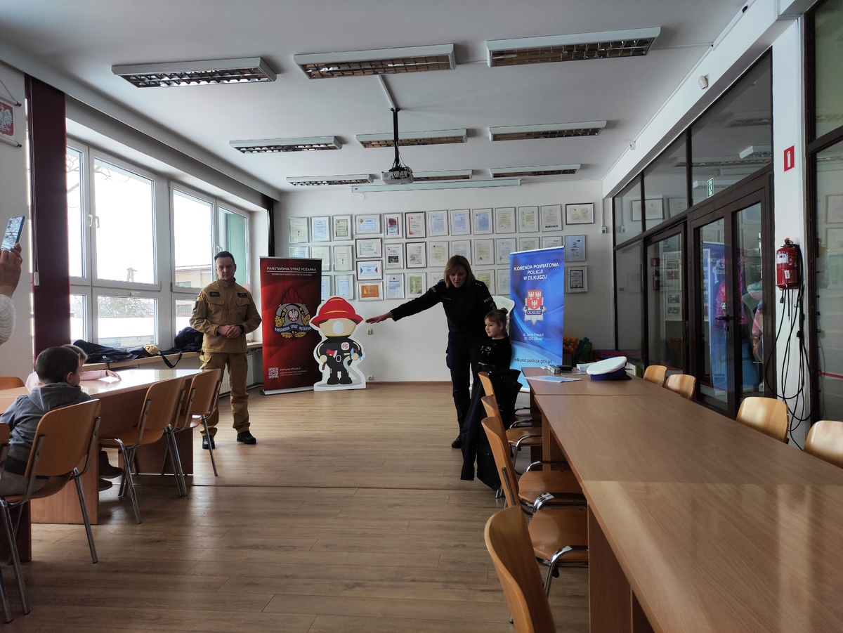 31 stycznia br. w Powiatowej i Miejskiej Bibliotece Publicznej w Olkuszu przedstawiciele Straży Pożarnej oraz Policji spotkali się przedszkolakami, aby przypomnieć im o zasadach bezpieczeństwa w ruchu drogowym i podczas zimowych zabaw.