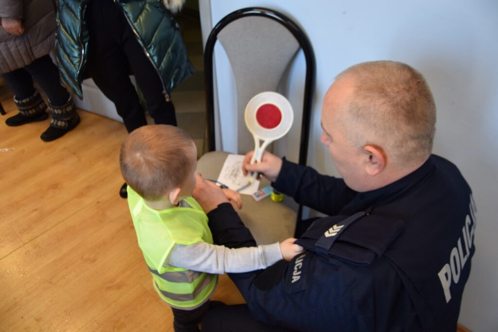 Podczas tego spotkania sierż. szt. Tomasz Konieczny oraz funkcjonariusze straży Piotr Serwatka i Andrzej Mąkol omówili z dziećmi zasady bezpiecznego zachowania się w przedszkolu, w domu i na drodze. Przypomnieli o obowiązku korzystania z elementów odblaskowych. Mali goście mogli wykazać się także swoją wiedzą z zakresu bezpieczeństwa w ruchu drogowym i chętnie odpowiadali na zadawane przez policjantów pytania. Doskonale wiedzieli, jak wybrać numer aby zadzwonić po pomoc. W trakcie odwiedzin przedszkolaki miały, również okazję porozmawiać z policjantami i funkcjonariuszami Straż Miejskiej o ich zawodzie i dowiedziały się, że to bardzo odpowiedzialna służba. Szczególnym zainteresowaniem cieszył się sprzęt i wyposażenie, które funkcjonariusze wykorzystują w codziennej służbie. Przedszkolaki z zaangażowaniem uczestniczyły w spotkaniach, chętnie też zadawały różne pytania. Na koniec spotkania każde dziecko otrzymało gadżety i kamizelkę odblaskową ufundowane przez Burmistrza Miasta i Gminy Wolbrom pana Adama Zielnika.