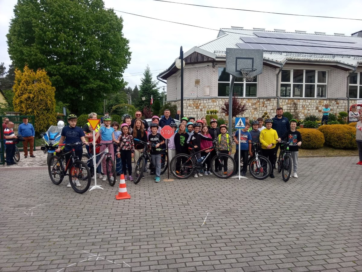 Jeszcze przez przystąpieniem do egzaminu praktycznego jazdy na rowerze, policjanci przypomnieli uczniom o przepisach i zasadach obowiązujących w ruchu drogowym. Udzielili kilku cennych wskazówek m.in. jak bezpiecznie poruszać się na rowerze, jak wygląda obowiązkowe wyposażenie jednośladu, o czym należy pamiętać będąc pełnoprawnym uczestnikiem ruchu drogowego. Mundurowi wspomnieli też o tym, że rowerzyści podobnie jak piesi, należą do grupy niechronionych uczestników ruchu drogowego i muszą szczególnie dbać o swoje bezpieczeństwo.