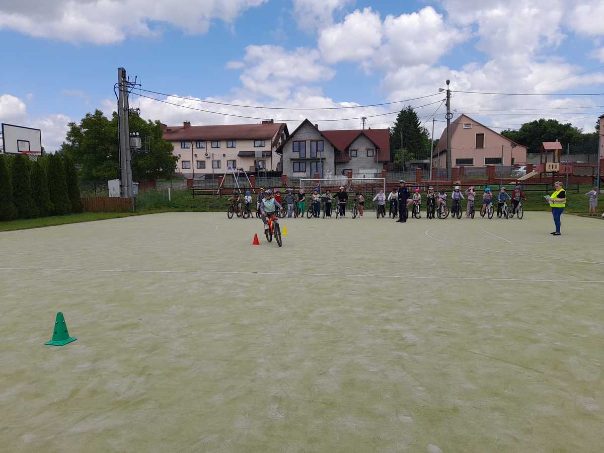 Jeszcze przez przystąpieniem do egzaminu praktycznego jazdy na rowerze, policjanci przypomnieli uczniom o przepisach i zasadach obowiązujących w ruchu drogowym. Udzielili kilku cennych wskazówek m.in. jak bezpiecznie poruszać się na rowerze, jak wygląda obowiązkowe wyposażenie jednośladu, o czym należy pamiętać będąc pełnoprawnym uczestnikiem ruchu drogowego. Policjanci wspomnieli też o tym, że rowerzyści podobnie jak piesi, należą do grupy niechronionych uczestników ruchu drogowego i muszą szczególnie dbać o swoje bezpieczeństwo.