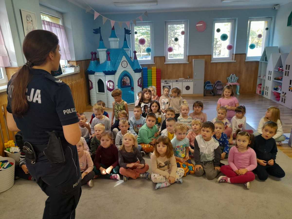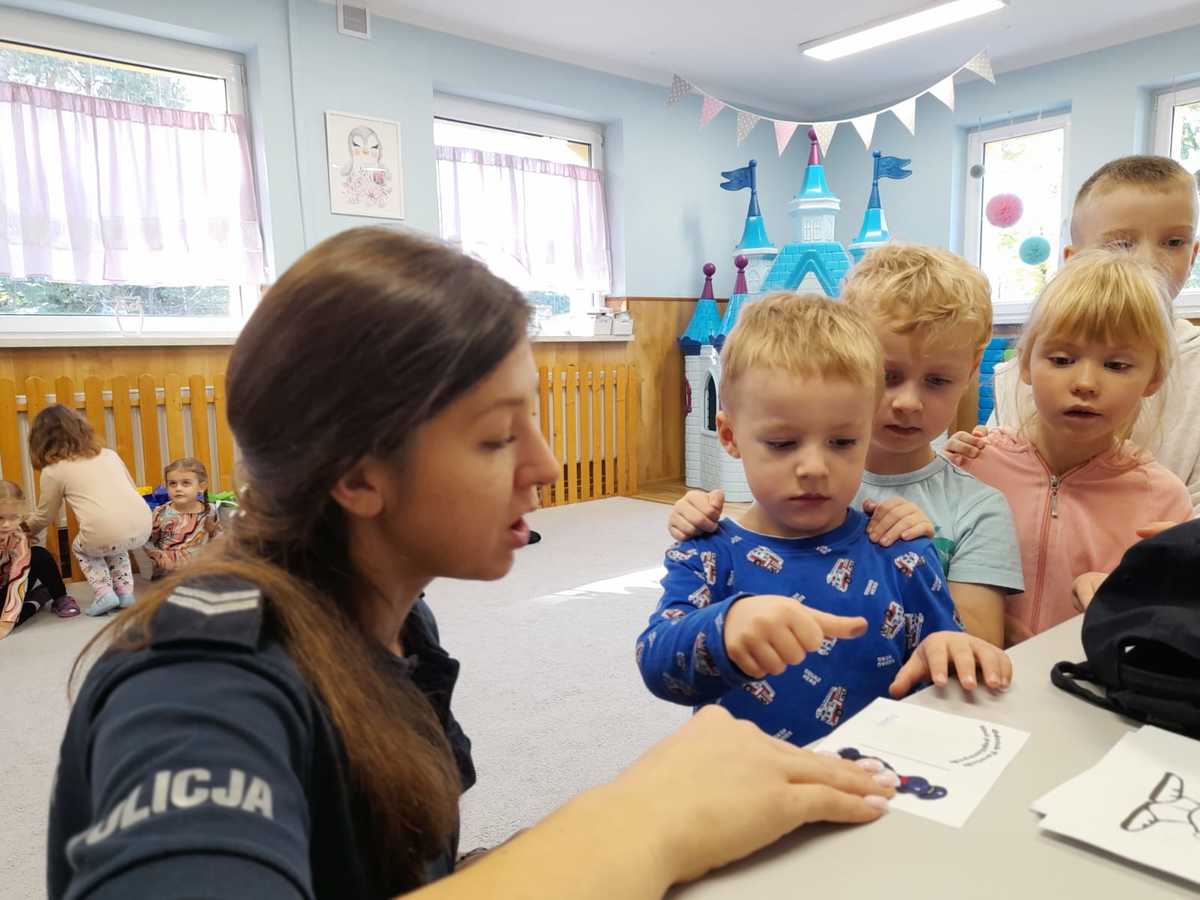 O bezpieczeństwie z przedszkolakami - wizyta policjantek w przedszkolu „Kraina Wiewiórek” w Olkuszu