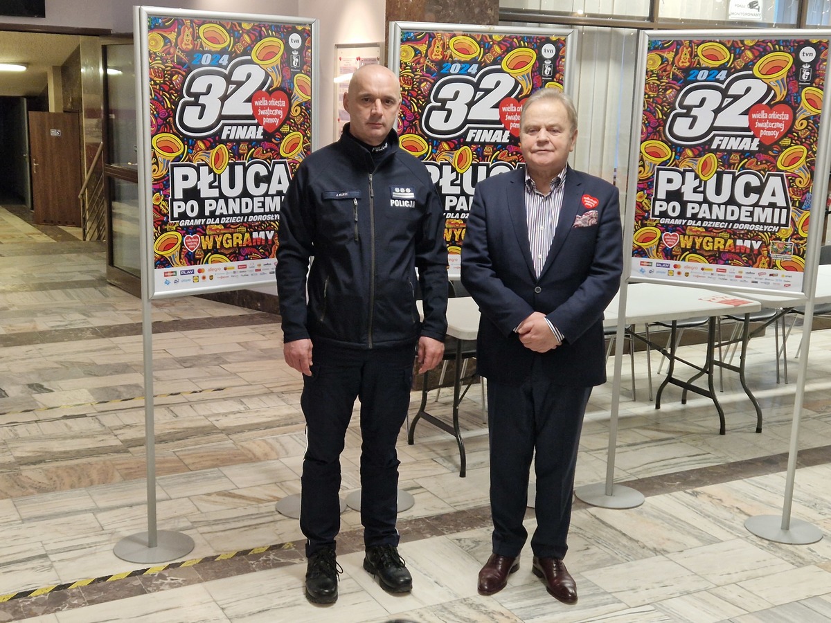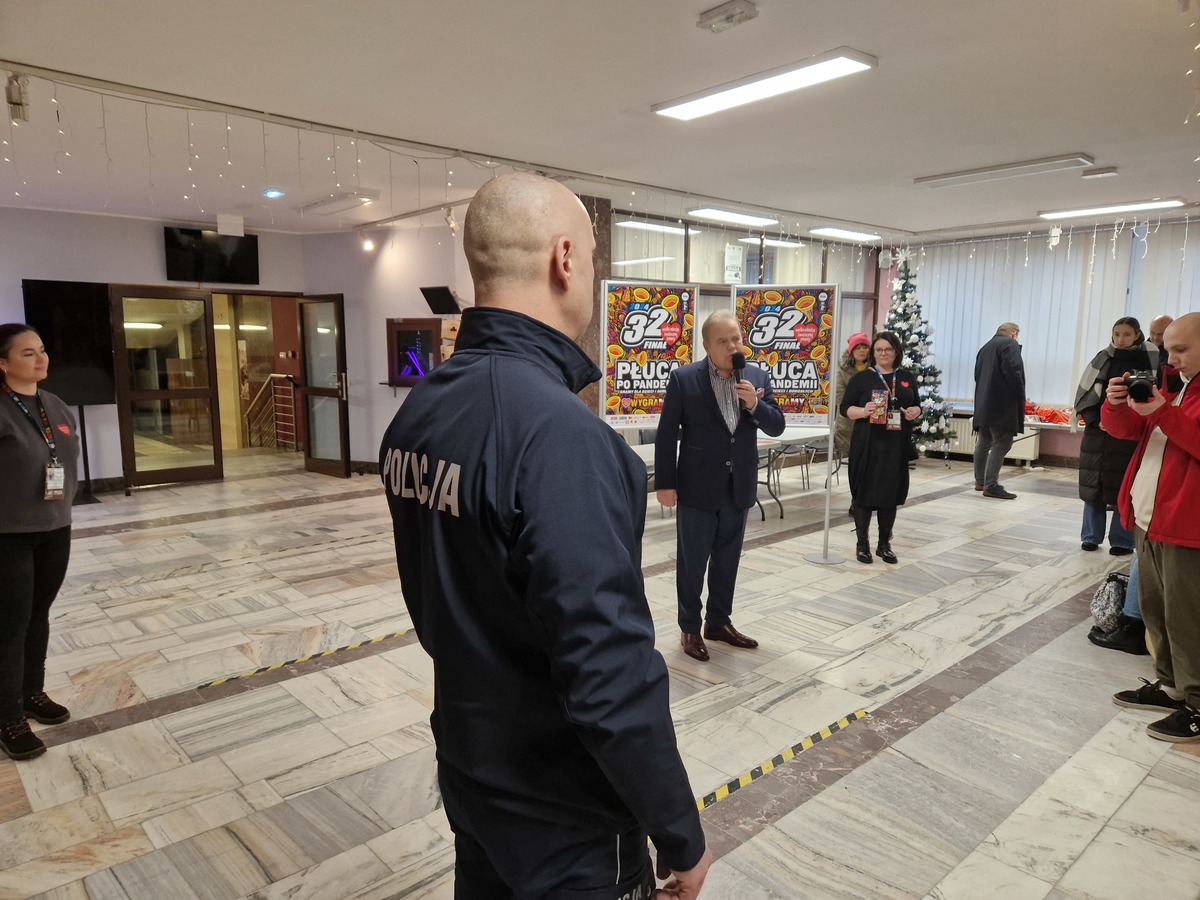 28 stycznia 2024 o godzinie 9 odbyło się uroczyste otwarcie 32 Finału WOŚP w Miejskim Domu Kultury w Olkuszu, którego dokonał Burmistrz Miasta i Gminy w Olkuszu Pan Roman Piaśnik. Podczas otwarcia obecny był również Komendant Powiatowy Policji w Olkuszu insp. Jarosław Klich oraz policjanci z tutejszej jednostki. Po rozpoczęciu uroczystości zostało przeprowadzone szkolenie dla wolontariuszy z zakresu bezpieczeństwa. Policjantka zwracała uwagę na potencjalne zagrożenia, na które mogą być narażeni wolontariusze. Apelowała, aby wolontariusze unikali miejsc mało uczęszczanych przez ludzi i słabo oświetlonych. Zwróciła uwagę, że szybko zapadający zmrok i kwestowanie w pojedynkę, mogą nieść ze sobą niebezpieczeństwo. Dlatego policjantka radziła, by wolontariusze starali się zapewnić sobie towarzystwo innych osób lub opiekę dorosłych. Wolontariusze zostali poinformowani o tym, jak należy zachować się w sytuacji zagrożenia i kogo należy powiadomić w pierwszej kolejności. Takie szkolenia prowadzone przez policjantów były również w sztabach w naszym powiecie.