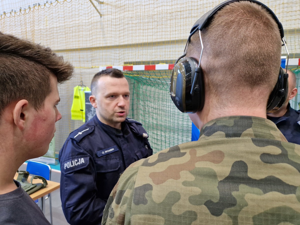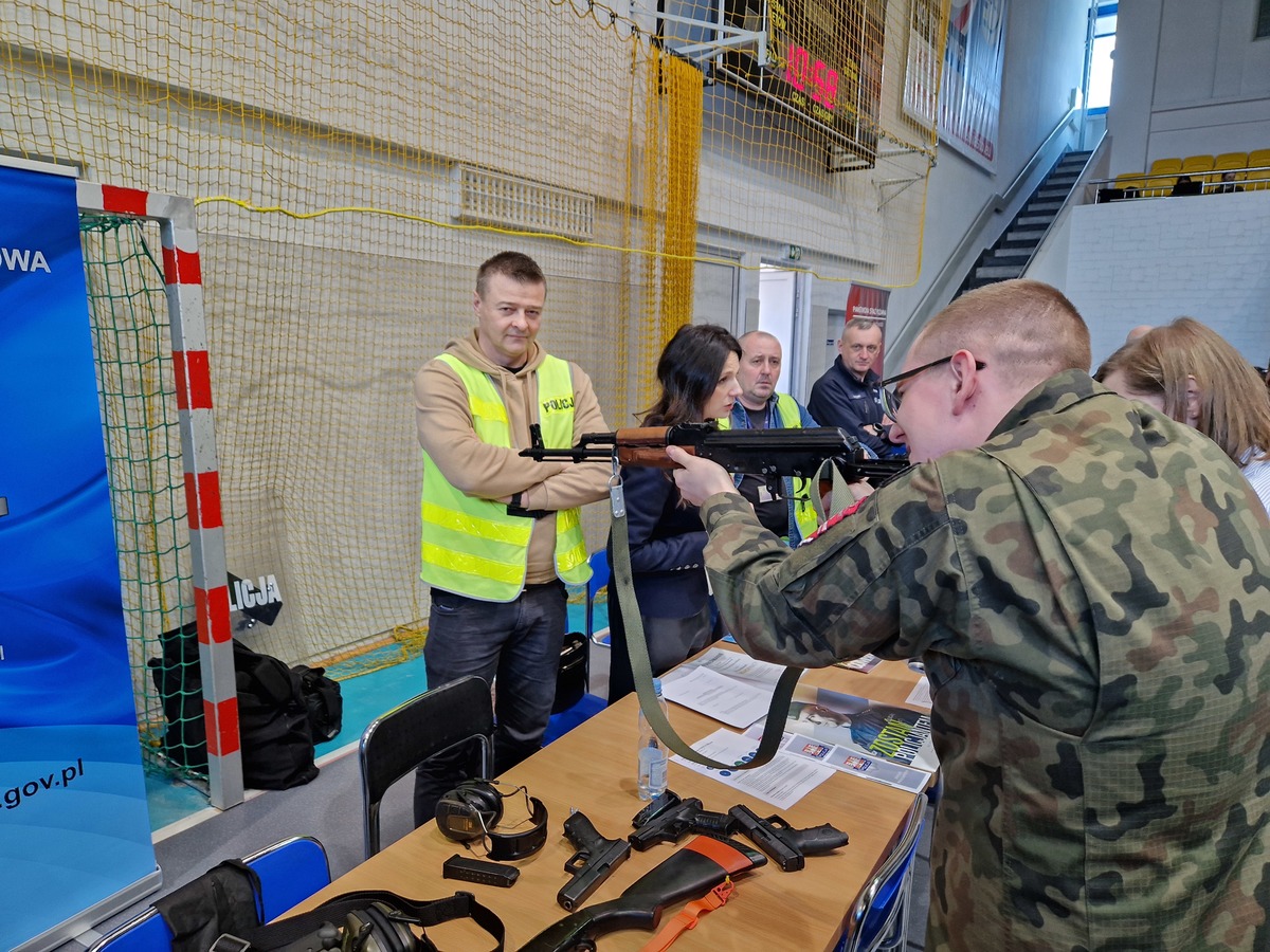 Dużym zainteresowaniem, zwłaszcza uczniów klas o profilu mundurowym, cieszyło się policyjne stanowisko, przy którym młodzież miała możliwość przyjrzeć się z bliska codziennej pracy funkcjonariuszy poszczególnych wydziałów. Można było obejrzeć sprzęt wykorzystywany w codziennej służbie przez policjantów ruchu drogowego i technika kryminalistyki. A także zapoznać się z różnymi jednostkami broni. Policjanci rozmawiali również o perspektywach, jakie daje służba w policji. Pracownik Policji przedstawiał szczegółowo etap kwalifikacyjny, wymogi jakie musi spełniać kandydat do policji oraz szczegółowy proces rekrutacji. Zainteresowanym przekazywano wiele przydatnych wskazówek i informacji związanych z przygotowaniem się do testów obowiązujących na etapie procesu rekrutacji.