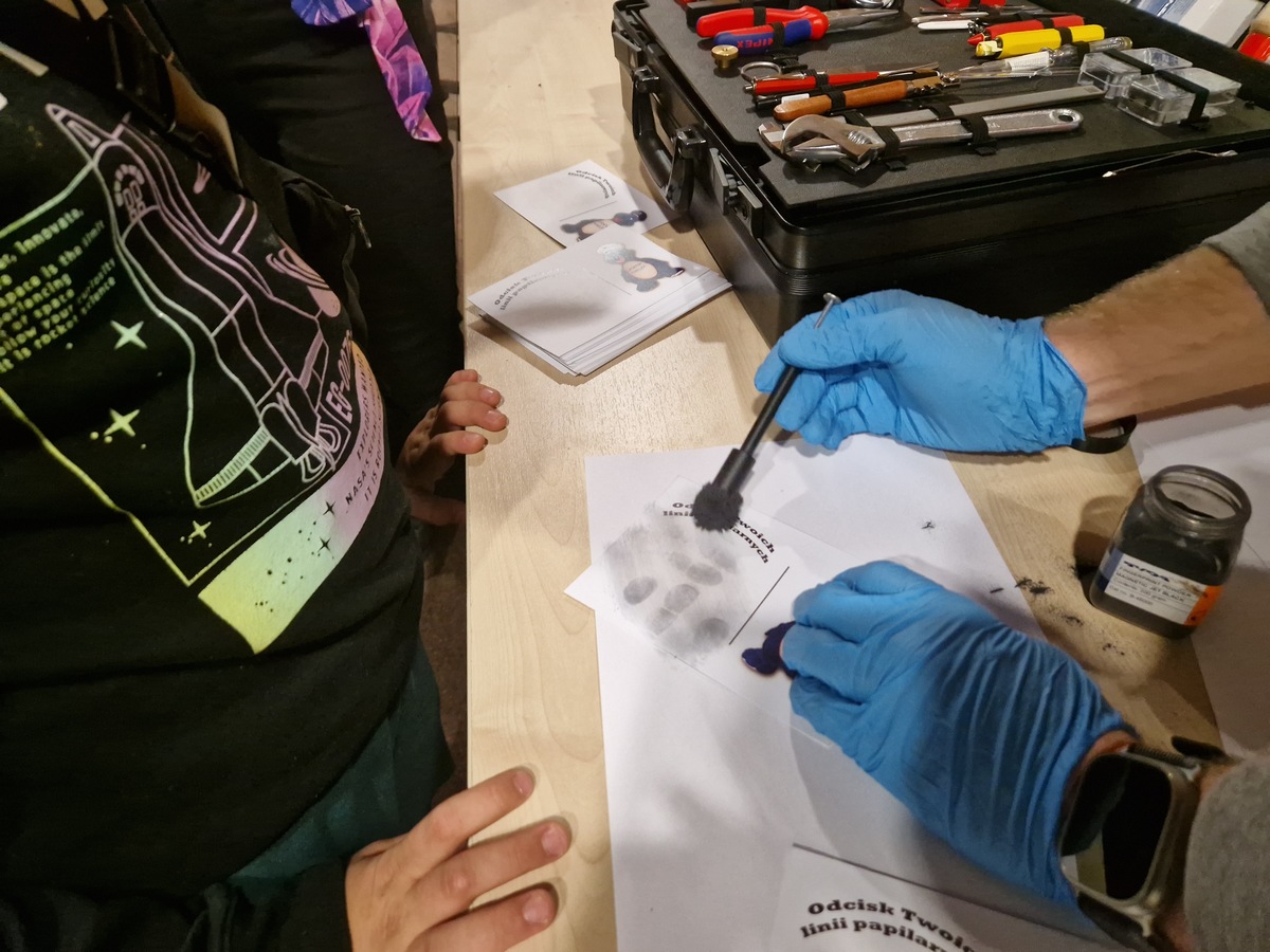 Funkcjonariusze Komendy Powiatowej Policji w Olkuszu są zawsze otwarci na wszelkie prośby, które dotyczą zwiedzania jednostki, szczególnie przez dzieci i młodzież zaciekawioną naszym zawodem. Tym bardziej, że nie każdy może z bliska przyjrzeć się pracy policjantów oraz wyposażeniu, jakie na co dzień wykorzystują w służbie. Podczas wczorajszego spotkania w auli komendy miłych gości przywitali szefowie olkuskiej komendy a także dzielnicowi, technik kryminalistyki, policjant ruchu drogowego i oficer prasowy. Dzieci zapoznały się m.in. z pracą w poszczególnych wydziałach. Wyjątkowo interesująca wydała im się praca technika kryminalistyki. Z zaciekawieniem słuchały opowieści o różnych rodzajach śladów zabezpieczanych na miejscu zdarzeń. Dzieci uczestniczyły w prezentacji zbierania śladów linii papilarnych. Każdy z nich otrzymał pamiątkowy dyplom z odciskami własnych linii papilarnych. Z kolei policjant ruchu drogowego przypomniał dzieciom o bezpiecznych zachowaniach na drodze. Zachęcał je do noszenia kamizelek odblaskowych i wręczał odblaski. Dużą frajdę sprawiało im oglądanie policyjnego wyposażenia, który zaprezentowali dzielnicowi. Uczestnicy wycieczki z zaangażowaniem brali udział w spotkaniu i chętnie odpowiadali na pytania. Atrakcją okazało się spotkanie na strzelnicy, które przeprowadził I Zastępca Komendanta Powiatowego Policji w Olkuszu komisarz Tomasz Mosur. Na końcu wycieczki oficer prasowy zaprosiła dzieci do swojego pokoju oraz Niebieskiego Pokoju z lustrem weneckim. Spotkanie z podopiecznymi Stowarzyszenia „Res Sacra Miser” odbyło się w niezwykle przyjaznej atmosferze. Dzieciom oraz ich rodzicom, którzy oczekiwali na swoje pociechy towarzyszyły uśmiech i radość.