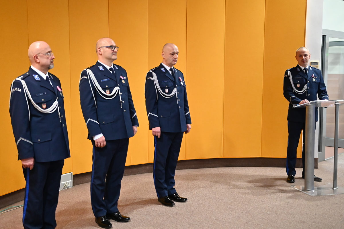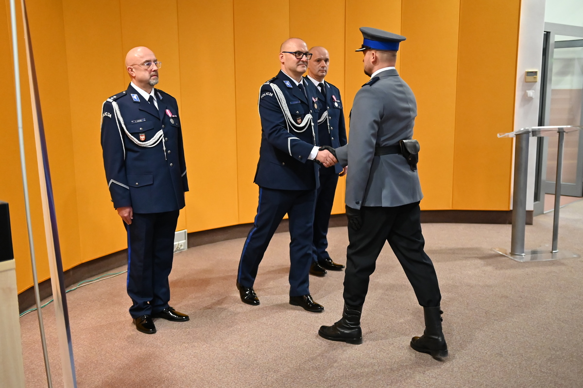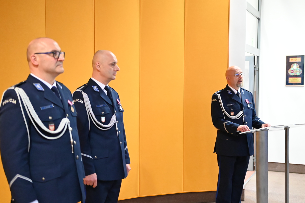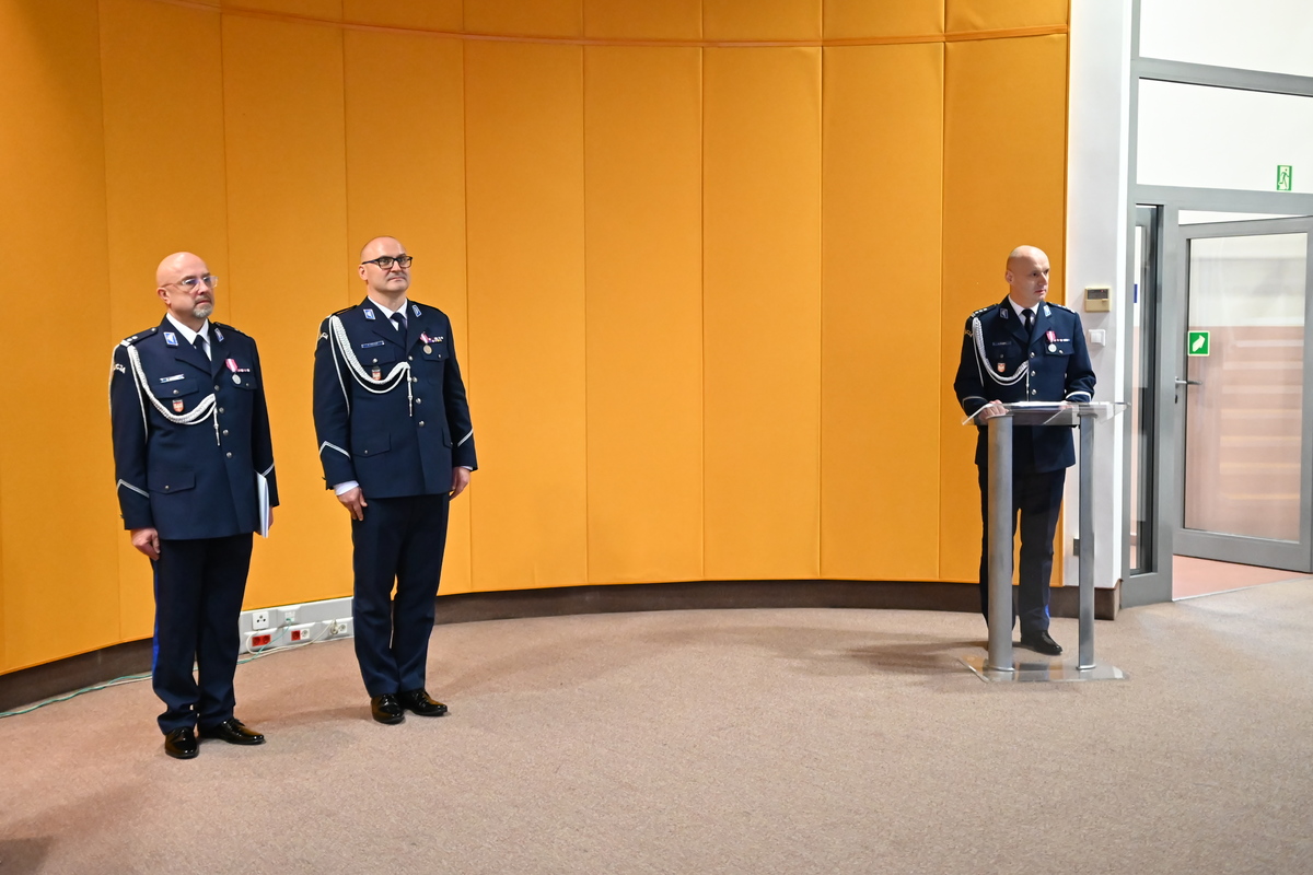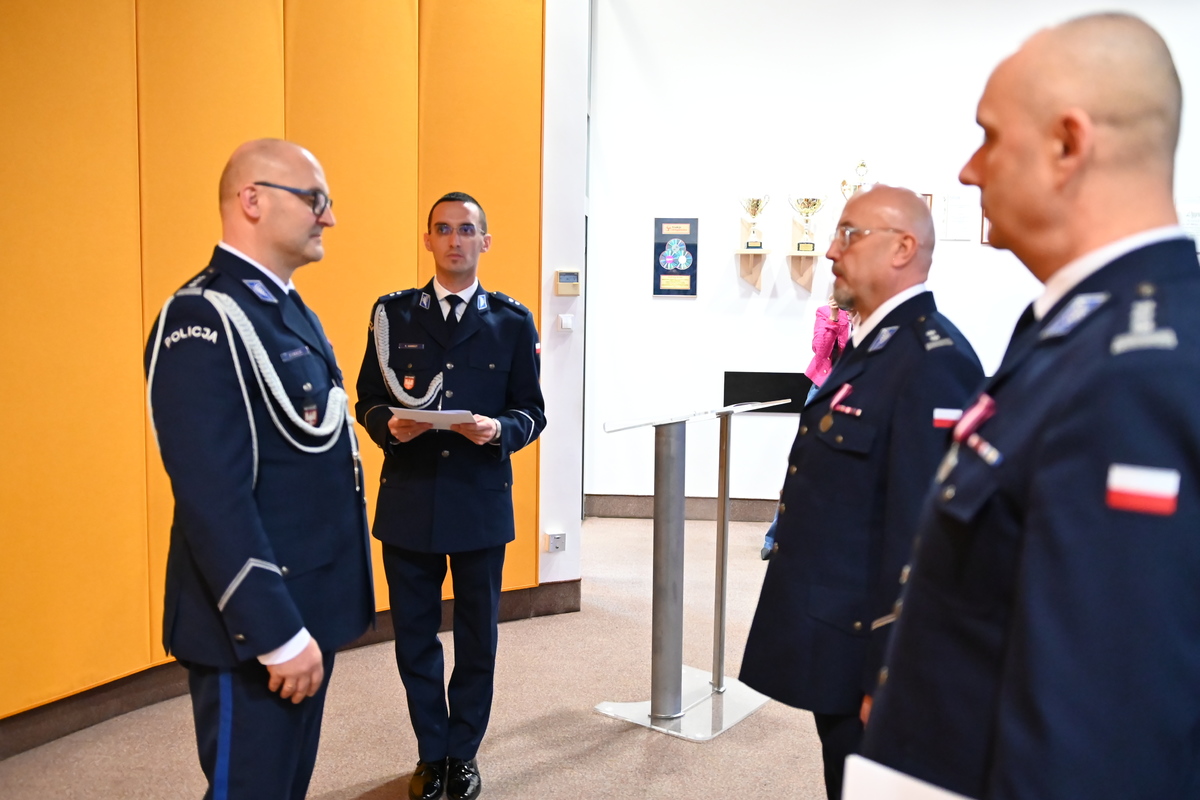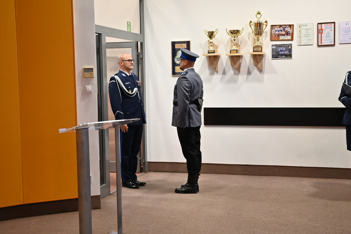Na wstępie Zastępca Komendanta Wojewódzkiego Policji w Krakowie Paweł Krauz przywitał uczestników ceremonii i podziękował ustępującemu szefowi olkuskich policjantów za dotychczasową służbę, podkreślając jego profesjonalizm, doświadczenie i zaangażowanie. Bardzo dziękuję Panie Komendancie za tą ciężką pracę, którą Pan wykonał dla powiatu olkuskiego i bezpieczeństwa mieszkańców. Wszystkie sukcesy, które Pan osiągnął pozwolą w nowej jednostce znaleźć obszary, w których będzie się mógł Pan rozwijać. Inspektor Paweł Krauz życzył również młodszemu inspektorowi Dominikowi Jurczakowi sukcesów na nowym stanowisku. Jestem przekonany, że młodszy inspektor Dominik Jurczak zostanie przez Państwa dobrze przyjęty, zarówno przez samorząd, jak i kadrę kierowniczą tej jednostki. Życzę żeby Pan zbudował zespół, który będzie zawsze służył na rzecz bezpieczeństwa mieszkańców powiatu olkuskiego.