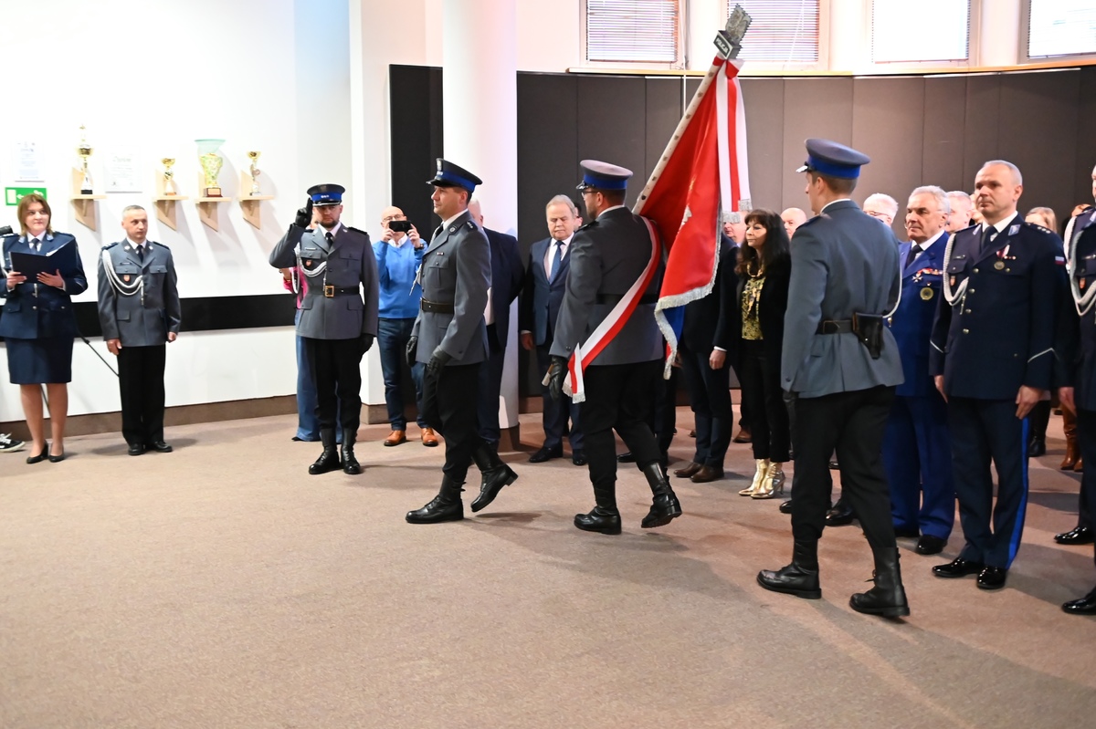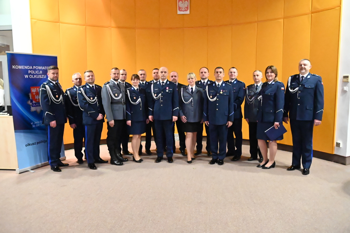 Inspektor Jarosław Klich po 34 latach służby związanej z olkuską jednostką zdał swoje obowiązki służbowe i pożegnał się ze sztandarem komendy. Rozkazem Komendanta Wojewódzkiego Policji w Krakowie inspektora Artura Bednarka został oddelegowany do Komendy Powiatowej Policji w Wieliczce na stanowisko komendanta. Z kolei obowiązki ówczesnego szefa tutejszej jednostki przejął młodszy inspektor Dominik Jurczak, który służy w Policji od 1995 roku. Ta wyjątkowa ceremonia odbyła się w obecności Zastępcy Komendanta Wojewódzkiego Policji w Krakowie inspektora Pawła Krauza, Starosty Powiatu Olkuskiego Bogumiła Sobczyka, Burmistrza Miasta i Gminy w Olkuszu Romana Piaśnika, Burmistrza Miasta Bukowno Marcina Cockiewicza, Burmistrza Miasta Wolbrom Radosława Kusia, Wójta Gminy Klucze Norberta Bienia, Wójta Gminy Bolesław Krzysztofa Dudzińskiego, Wójta Gminy Trzyciąż Romana Żelaznego, Prezesa Sądu Rejonowego w Olkuszu Wojciecha Trzaski, Prokuratora Rejonowego w Olkuszu Piotra Piekarskiego, Komendanta Powiatowego Państwowej Straży Pożarnej w Olkuszu bryg. Michała Polaka, Prezesa Nowego Szpitala w Olkuszu Norberta Kubańskiego, Dyrektora Powiatowej Stacji Sanitarno-Epidemiologicznej w Olkuszu Agaty Knapik, Dyrektora Małopolskiego Szpitala Chorób Płuc i Rehabilitacji w Jaroszowcu Krzysztofa Grzesika, Prezesa Zarządu Oddziału Rejonowego Wodnego Ochotniczego Pogotowia Ratunkowego w Olkuszu Stanisława Starzyka, Kapelana ks. Henryka Chmieły, kadry kierowniczej, policjantów i pracowników cywilnych tutejszej jednostki. Punktualnie o godzinie o godzinie 11.00 dowódca uroczystości komisarz Marcina Kwiecień Naczelnik Wydziału Prewencji Komendy Powiatowej Policji w Olkuszu złożył meldunek Zastępcy Komendanta Wojewódzkiego Policji w Krakowie inspektorowi Pawłowi Krauzowi o rozpoczęciu ceremonii. Na miejsce wprowadzono sztandar jednostki, przed którym kolejno inspektor Jarosław Klich i młodszy inspektor Dominik Jurczak oddali honory. Następnie po odczytaniu rozkazów Komendanta Wojewódzkiego Policji w Krakowie inspektora Artura Bednarka o oddelegowaniu do Komendy Powiatowej Policji w Wieliczce inspektora Jarosława Klicha oraz objęciu stanowiska Komendanta Powiatowego Policji w Olkuszu przez młodszego inspektora Dominika Jurczaka, rozpoczęto przemówienia.