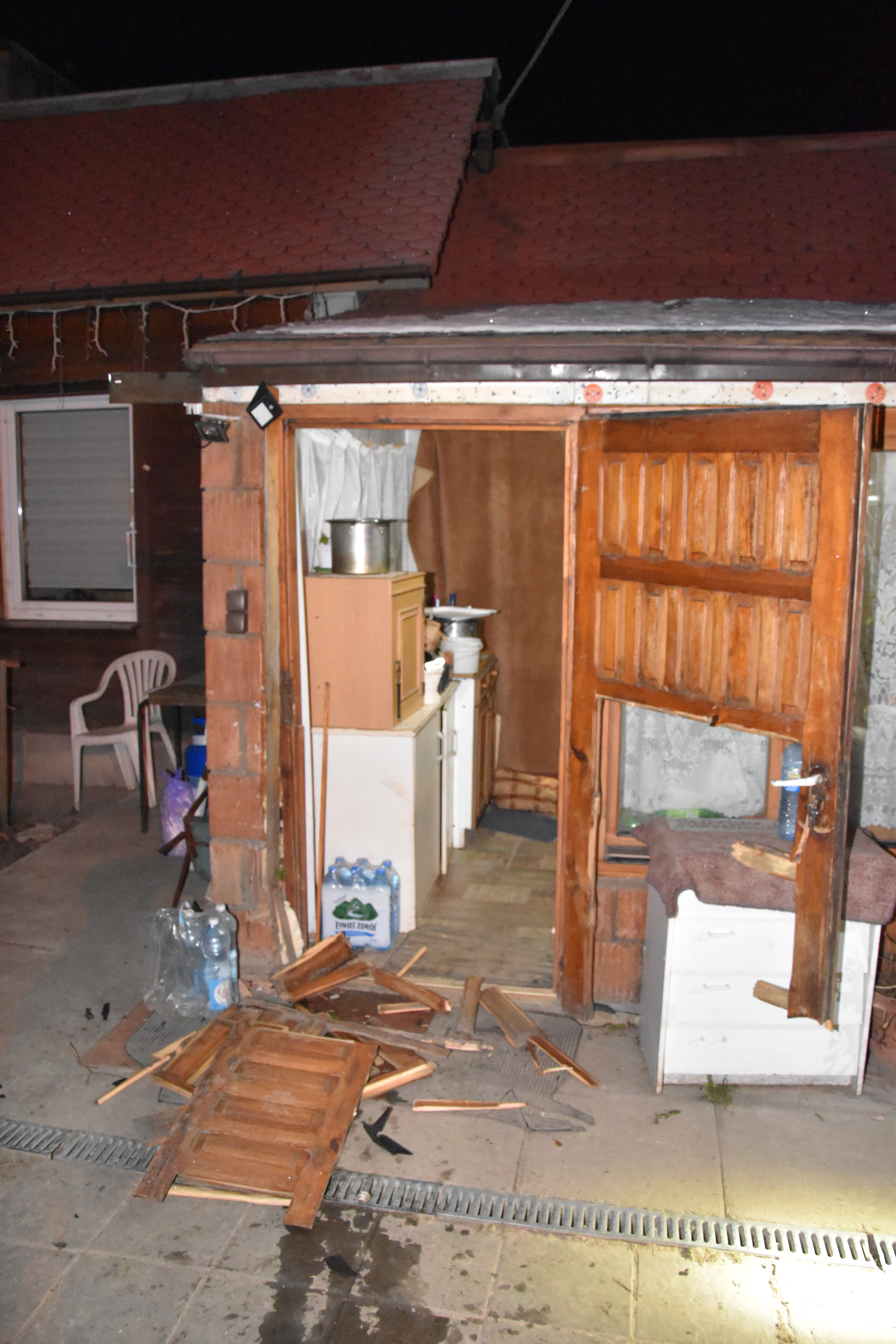 W tym czasie dzielnicowy z Komisariatu Policji w Wolbromiu pełnił jednoosobowo służbę oznakowanym radiowozem - oplem mokką. Słysząc komunikaty o kierowcy mercedesa, natychmiast ruszył w teren w poszukiwaniu samochodu. Już po chwili, na jednej z ulic Wolbromia, zauważył poszukiwany pojazd. Policjant ruszył za nim, włączając sygnały świetlne i dźwiękowe. Mężczyzna nie zatrzymał się, nie reagował też na polecenia wydawane przez policjanta. Dzielnicowy dalej kontynuował pościg, wjeżdżając na teren powiatu miechowskiego. Nagle, w miejscowości Podlesice kierowca mercedesa zatrzymał się, włączył wsteczny bieg i uderzył w radiowóz, próbując zepchnąć go z drogi. Po chwili kierowca znowu ruszył do przodu i skręcił w jedną z posesji, a następnie wjechał w budynek, uderzył w ganek i drzwi wejściowe.