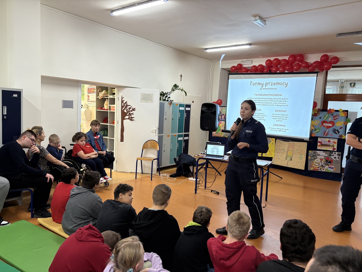 W prelekcjach uczestniczyli uczniowie, nauczyciele oraz pedagodzy szkolni, wspólnie tworzac przestrzeń do rozmowy o tym, jak budować świat wolny od agresji i przemocy. Podczas spotkań funkcjonariusze tłumaczyli, że przemoc może mieć różne formy i zawsze należy mówić o niej dorosłym, którym się ufa oraz informowali, gdzie szukać pomocy. Uczniowie aktywnie uczestniczyli w rozmowach, a także mogli wyrazić swoje emocje i przemyślenia w kreatywny sposób - poprzez przygotowanie plakatów i prac plastycznych promujących bezpieczne dzieciństwo.Kolorowe transparenty stały się symbolem zaangażowania uczniów w ideę dobra i wzajemnego zrozumienia.