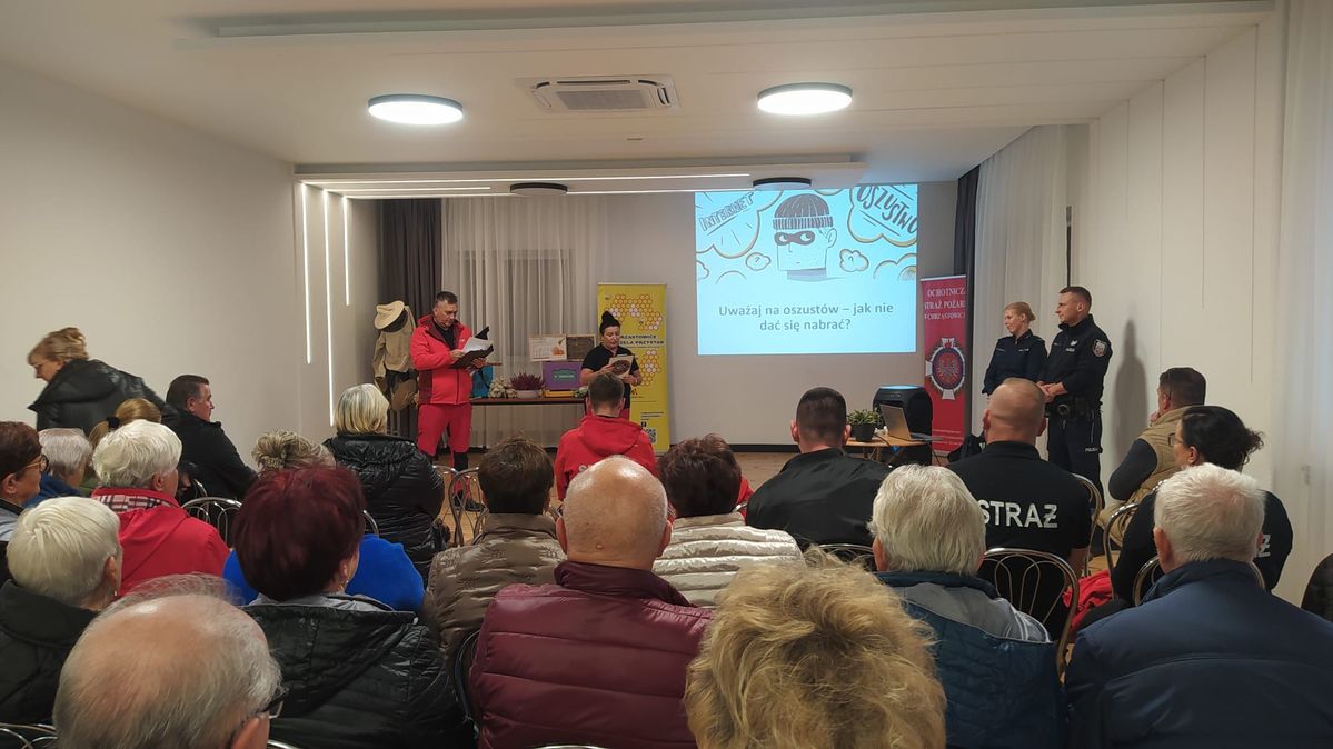 Podczas spotkania omówiono popularne metody wykorzystywane przez oszustów, między innymi "na wnuczka", "na policjanta" czy "na pracownika banku". Dzielnicowy wyjaśnił, w jaki sposób oszuści manipulują emocjami swoich ofiar, podszywając się pod bliskich lub funkcjonariuszy oraz jak zachować ostrożność w rozmowach telefonicznych i podczas korzystania z Internetu.