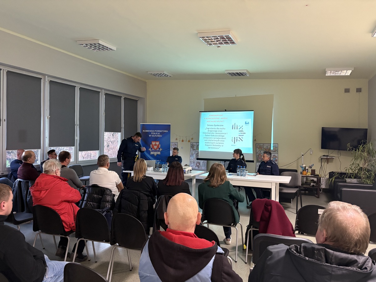 6 listopada 2025 roku w Domu Kultury "Hutnik" w Jaroszowcu odbyła się debata ewaluacyjna, podczas której policjanci z Komendy Powiatowej Policji w Olkuszu oraz Komisariatu Policji w Kluczach, samorządowcy i mieszkańcy gminy Klucze wspólnie ocenili efekty działań podjętych po wcześniejszym spotkaniu. Co się zmieniło od tamtego czasu? Odpowiedź na to pytanie padła podczas otwartej dyskusji poświęconej tematowi: „Bezpieczeństwo ruchu kołowego w miejscowości Jaroszowiec związane z funkcjonowaniem firmy CEMEX z/s w Zalesiu Golczowskim”.