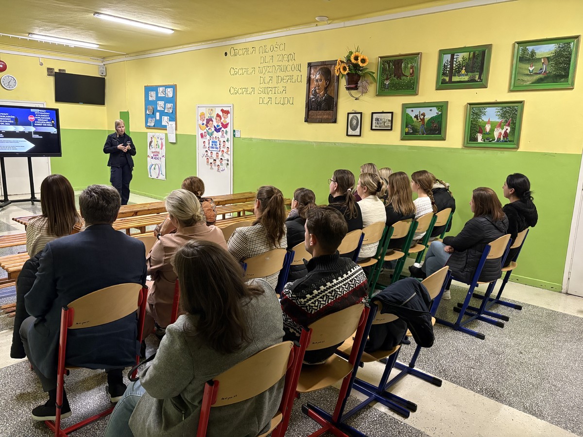 W ubiegłym tygodniu - 12 i 13 listopada br., dzielnicowi z Komisariatu Policji w Wolbromiu przeprowadzili w Szkole Podstawowej w Kąpielach Wielkich poprowadzili dwudniowy cykl spotkań poświęconych bezpieczeństwu dzieci - zarówno na drodze, jak i w środowisku domowym. Pierwszego dnia odbyła się prelekcja dla uczniów, podczas której przypomniane zostały zasady bezpiecznego poruszania się po drogach. Uczniowie dowiedzieli się, dlaczego odblaski moga uratować życie i jak prawidłowo korzystać z nich na co dzień. Młodzież aktywnie uczestniczyła w zajęciach, chętnie odpowiadała na pytania i dzieliła się własnymi doświadczeniami. Drugiego dnia dzielnicowi spotkali się z rodzicami, aby porozmawiać o budowaniu domu wolnego od przemocy. Podczas prelekcji omówiono wpływ krzywdzących zachowań na rozwój dziecka, znaczenie właściwej komunikacji oraz sposoby reagowania w sytuacjach trudnych wychowawczo.