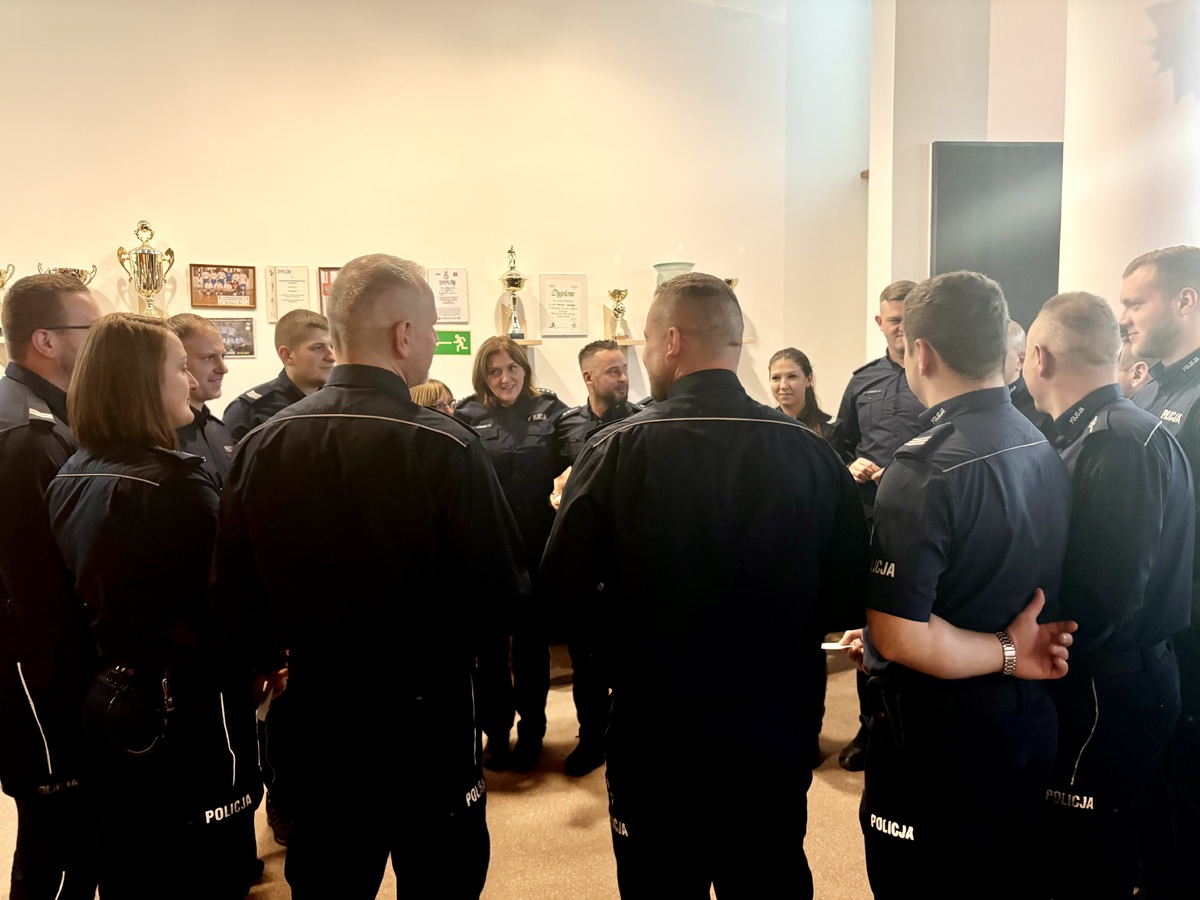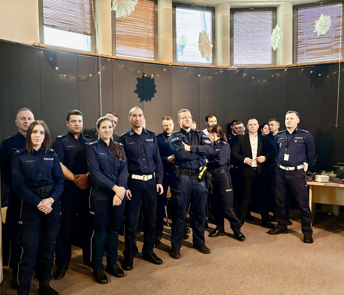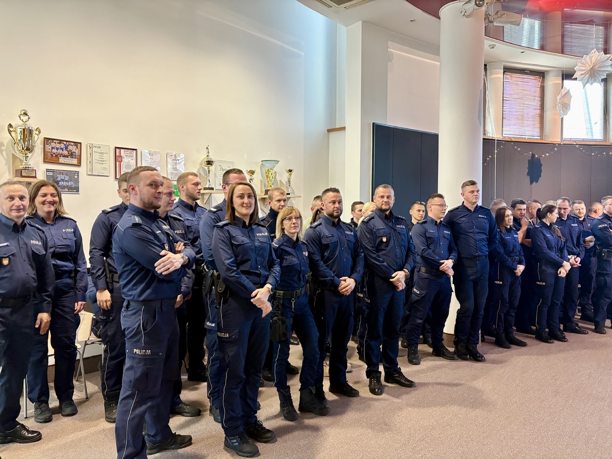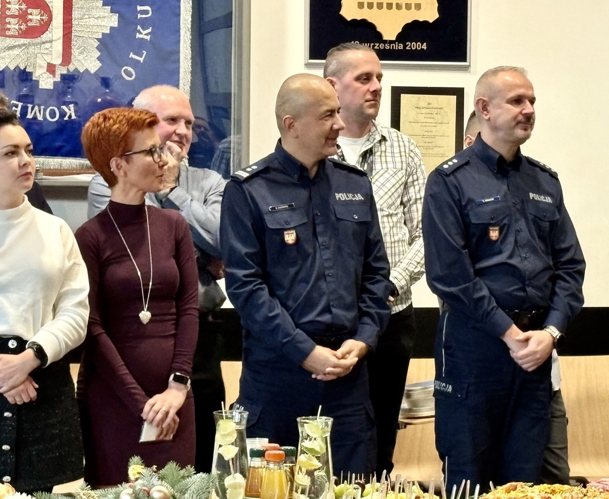 Spotkanie było również okazją do złożenia świątecznych życzeń, dzielenia się opłatkiem oraz rozmów w spokojnej, świątecznej aurze. Tradycyjne elementy wigilijne przypominały o wartościach, które w tym czasie nabierają szczególnego znaczenia — życzliwości, szacunku i wspólnocie.To przedświąteczne spotkanie stało się symbolicznym momentem zatrzymania w codziennym biegu obowiązków oraz okazją do umocnienia relacji pomiędzy funkcjonariuszami, pracownikami cywilnymi i kadrą kierowniczą, tworzącymi jedną, zintegrowaną społeczność.