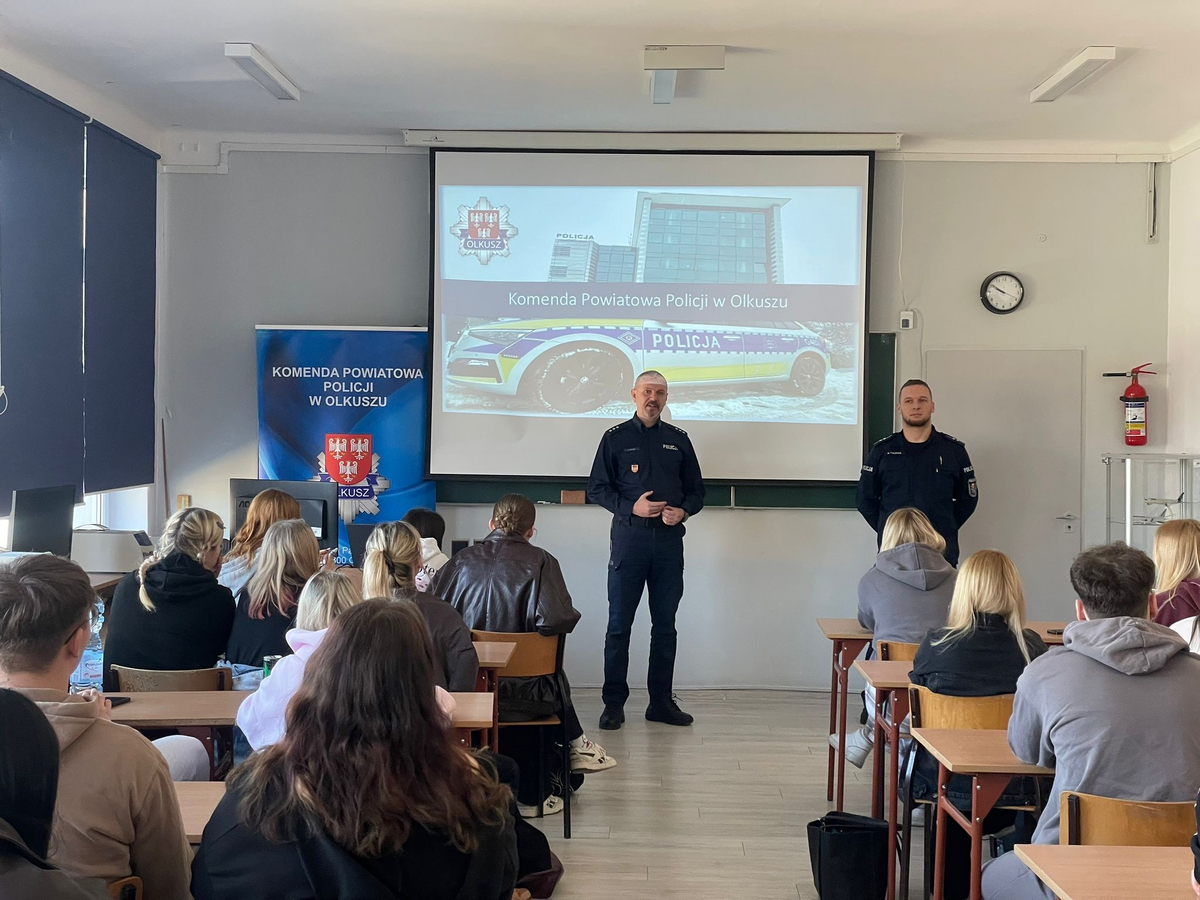 W środę, 18 marca br., przedstawiciele Komendy Powiatowej Policji w Olkuszu odwiedzili uczniów klas maturalnych Zespołu Szkół nr 4 im. Komisji Edukacji Narodowej w Olkuszu. Celem wizyty była promocja zawodu policjanta oraz przybliżenie młodzieży zasad naboru do służby.