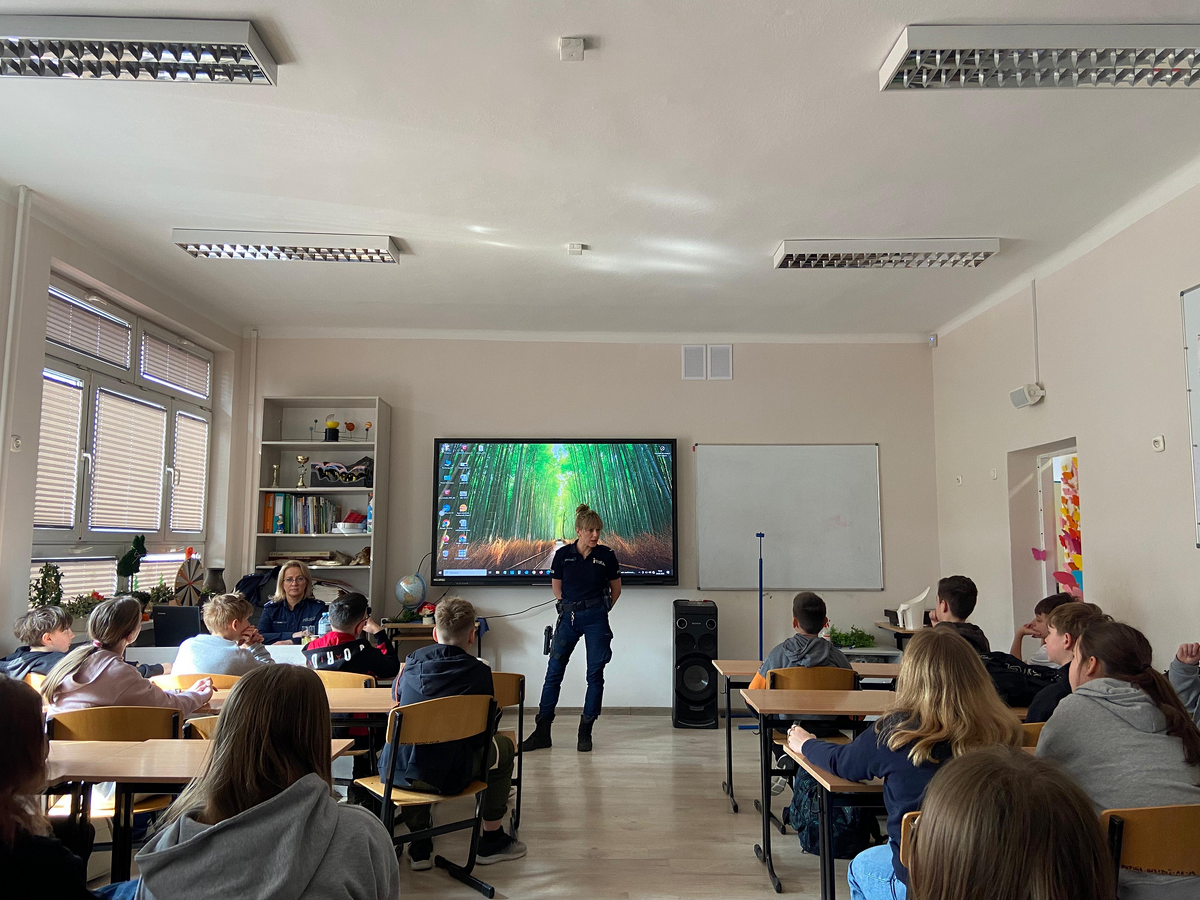 Pierwsze spotkanie miało miejsce 24 marca w szkole w Witeradowie. Funkcjonariusze w przystępny i angażujący sposób opowiedzieli uczniom o swojej codziennej służbie, zadaniach dzielnicowego oraz o tym, jak wygląda praca policjanta „od kuchni”. Nie zabrakło również rozmów o zasadach bezpieczeństwa – zarówno w drodze do szkoły, jak i podczas zabawy czy korzystania z internetu, a także o odpowiedzialności karnej nieletnich.