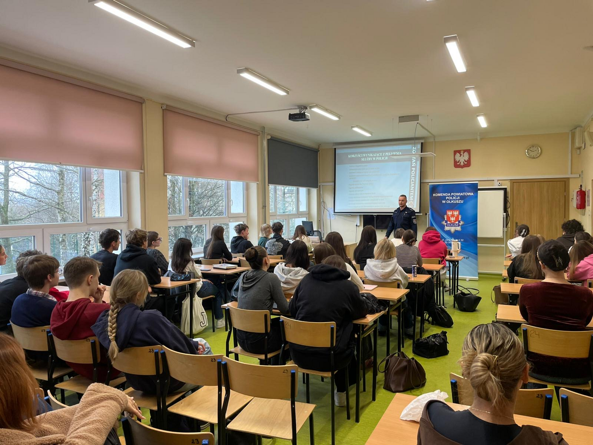 30 marca br. odbyło się ostatnie z zaplanowanych spotkań profilaktyczno-promocyjnych skierowanych do uczniów klas maturalnych. Tym samym olkuscy policjanci zakończyli tegoroczny cykl wizyt w szkołach średnich powiatu, którego celem było zachęcenie młodych ludzi do wstąpienia w szeregi formacji.
