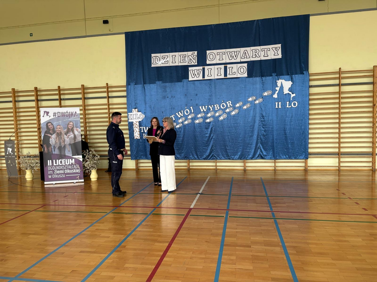 W dniu 14 kwietnia 2026 roku funkcjonariusze z Komendy Powiatowej Policji w Olkuszu wzięli udział w Dniu Otwartym zorganizowanym przez II Liceum Ogólnokształcące im. Ziemi Olkuskiej. Wydarzenie było doskonałą okazją do zaprezentowania specyfiki służby w Policji oraz rozmów o bezpieczeństwie z przyszłymi maturzystami i ósmoklasistami.